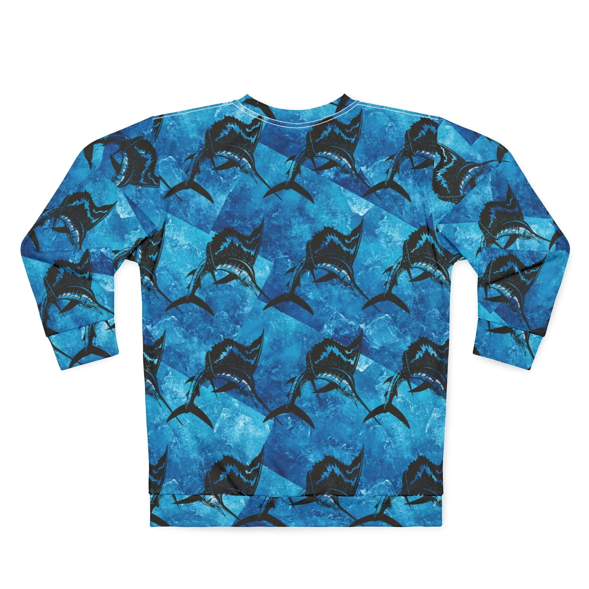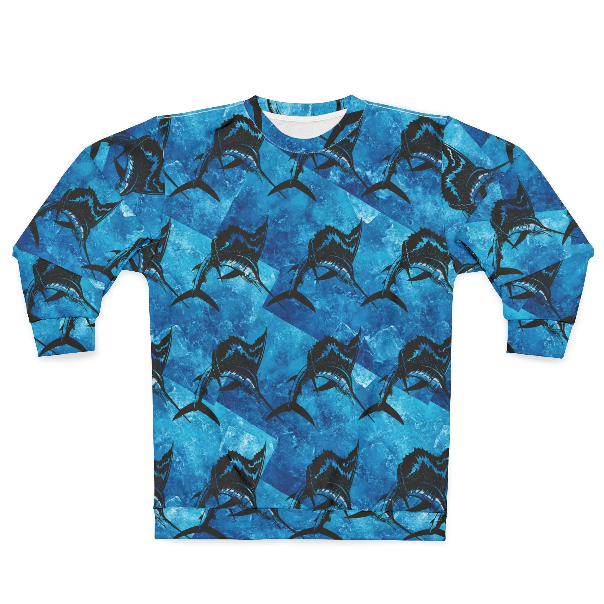 Dive into the deep with this all-over printed sweatshirt that brings the ocean’s pulse to your wardrobe. A repeating, painterly shark motif swims across rich, layered blues—like currents caught in motion. It sits comfortably with a classic crew neckline and a reliable fit, so you can wear it on brisk mornings at the marina, late-night bonfires by the shore, or while sketching waves in a coastal café. The bold, saturated print reads like wearable art: adventurous, confident, and quietly restless. Slip it on when you want to feel connected to the sea and its raw energy—whether you’re organizing dive gear, meeting fellow ocean-lovers, or just carrying that saltwater memory through the city streets.